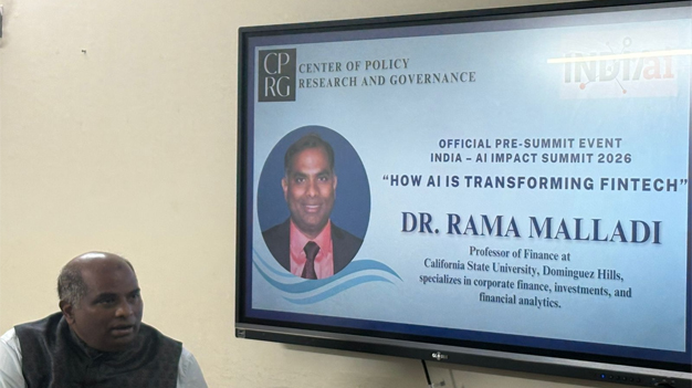 CPRG hosted a talk by Prof. Rama Malladi of California State University on the transformative role of AI in financial technology. The discussion explored how AI is reshaping finance, enhancing digital payments, credit access, compliance, and customer experience, while also addressing issues of regulation and inclusion. The session offered an international perspective on building a responsible, innovation-driven fintech ecosystem in India.